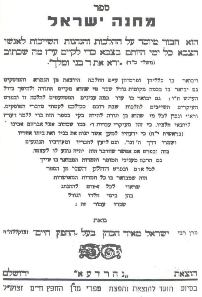 ספר שחולק למתנדב היהודי לצבא הבריטי במלחמת העולם השנייה מאת החפץ חיים