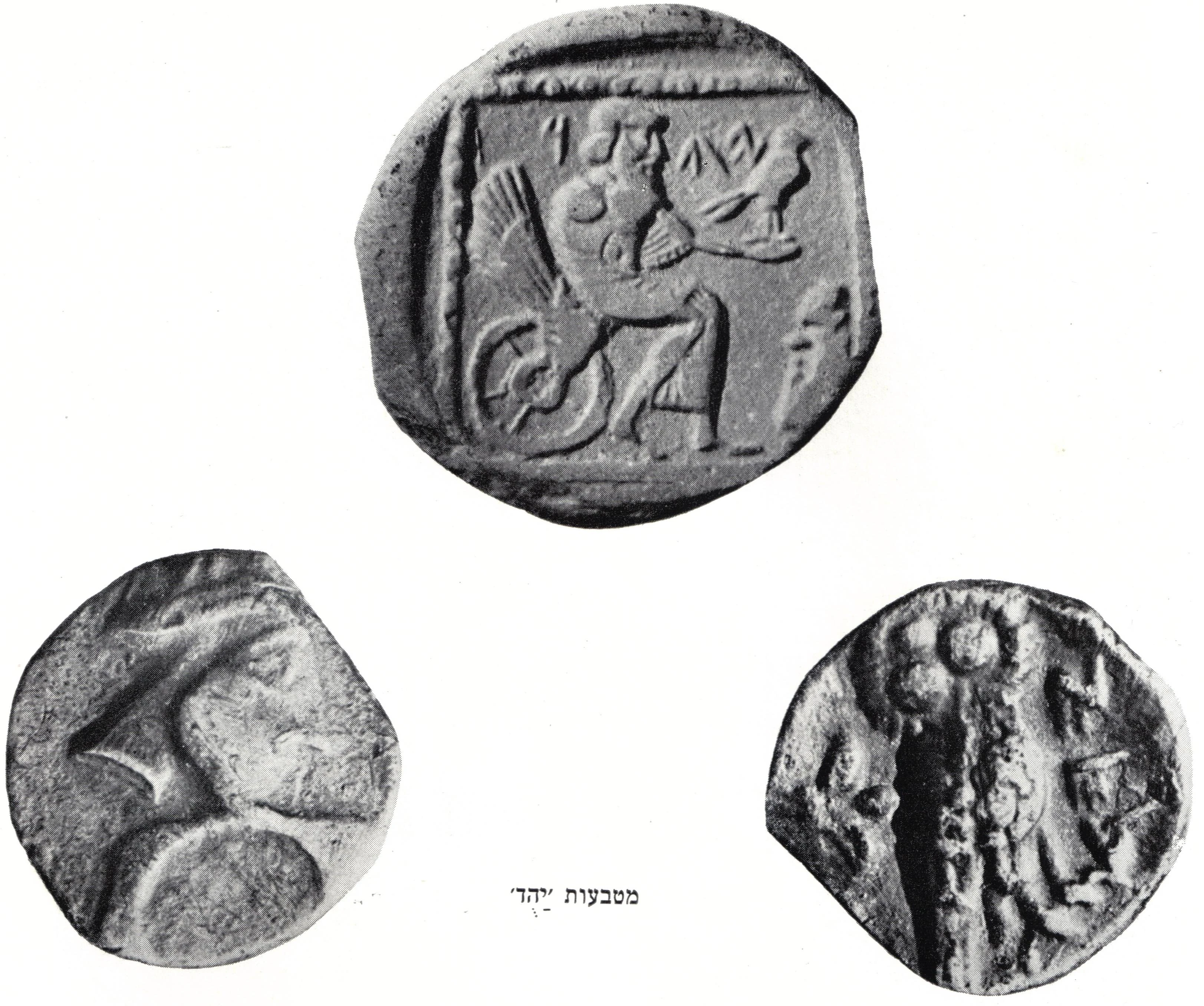 מטבעות הנושאים את השם "יהד" (באלפבית עברי עתיק), כשהאות ד' נכתבת כבר באלפבית ארמי