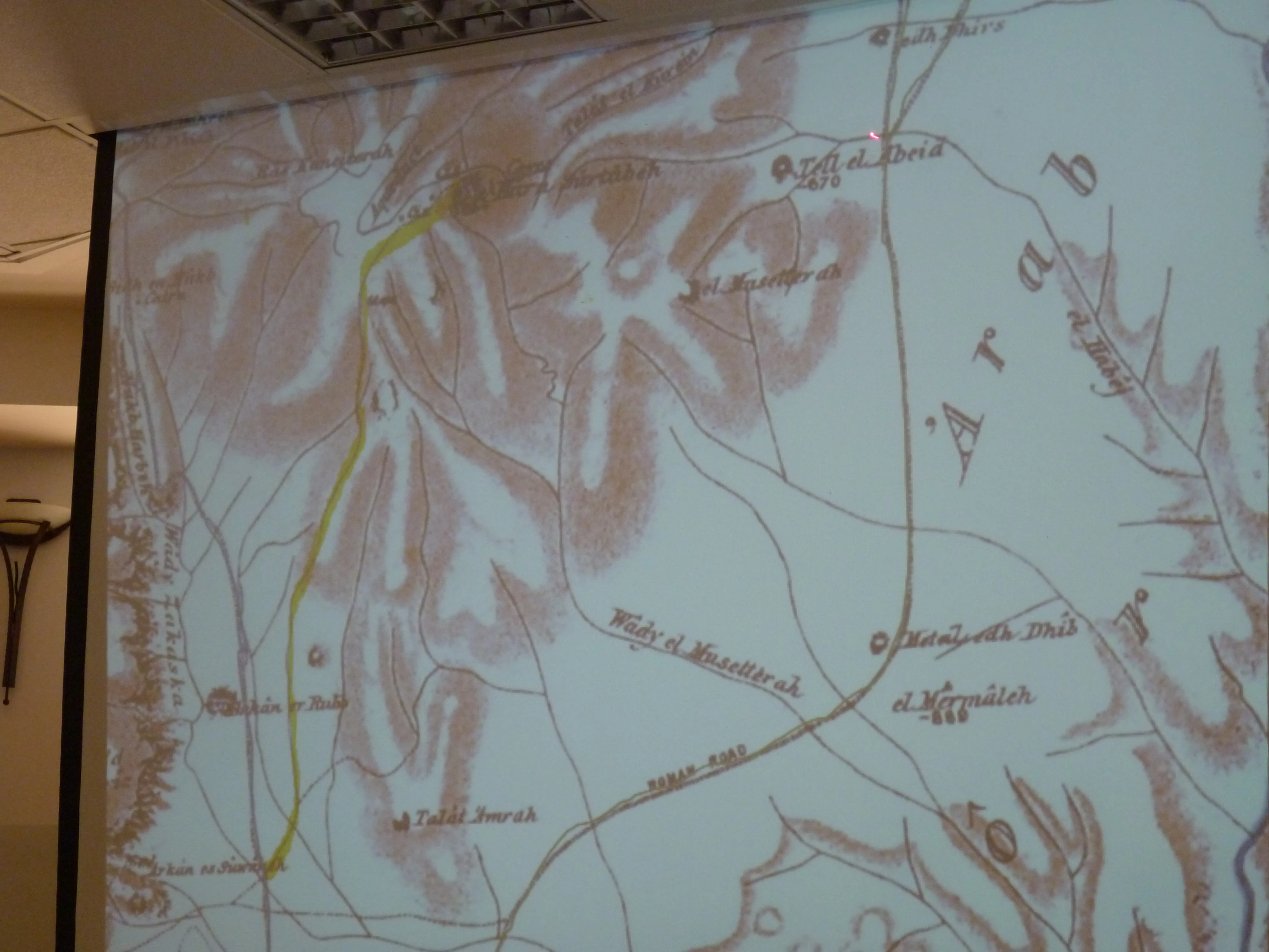 תוואי הדרך מסומנת בצהוב במפת הקרן לחקר ארץ ישראל - 1870