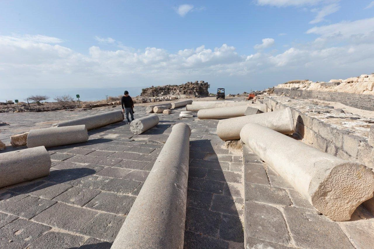 Hippos, the forum. The columns still lay where they fell in the 749 CE earthquake. Photo courtesy Michael Eisenberg