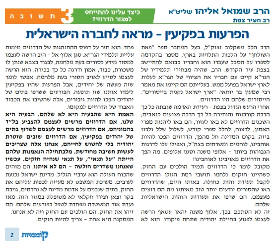 ראו להלן את דברי הרב שמואל אליהו על אירוע פקיעין