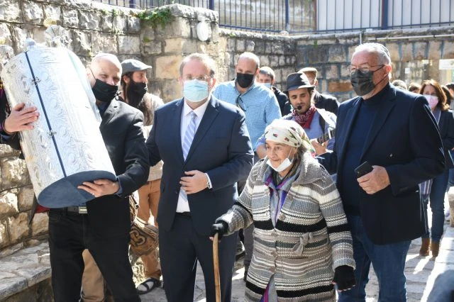 באירוע מרגש שהתקיים היום הוכנס ספר תורה לבית הכנסת העתיק בפקיעין על ידי מרגלית זינאתי ובמעמד יור ההסתדרות הציונית העולמית יעקב חגואל וסגן יור ההסתדרות הציונית העולמית גיל סגל חדשות סרוגים - 23.02.21 18:23 י"א באדר תשפא