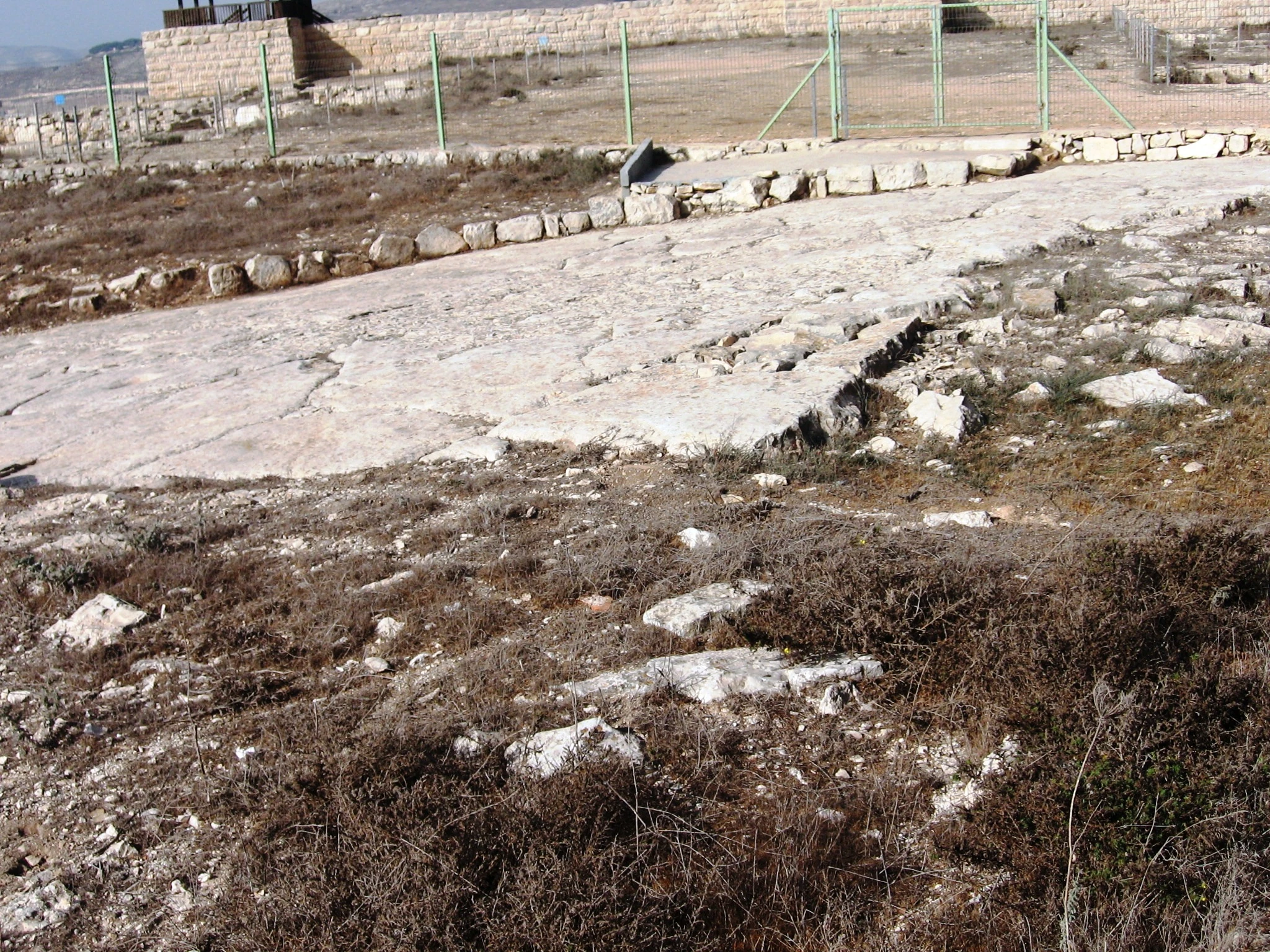 דגם האתרים הקדושים במרומי הר גריזים - אתר גבעות עולם המרובע החלק העליון של התמונה - למטה פיסגת ההר ועליו שרידי כנסיה, אולי מתחתיו מצוי שריד "בית המקדש" השומרוני שנבנה בימי בית שני כדוגמת המקדש בירושלים - המקור: מוזיאון השומרונים