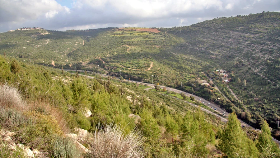 מכאן תקפו את השיירות לירושלים - הק"מ ה-21 - ראו למטה את קבר השייח' -המקור:ויקישיתוף, צילם:אבישי טייכר